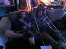"But now unfortunately we have had a run of really bad luck. Tignes local Ed Stockwell broke his collar bone and then Rich Jonas bruised his heel and bit his tongue. He had to have eleven stitches to re-attach it (it was minging). Another Tigens lad, Simon Belson twisted his spine and then Will Radula-Scott broke his pelvis. So this really sucks!