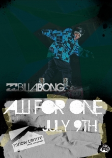 Next up is the Billabong 'All For One' at Hemel Hempstead on July 9th. The day will be split in two, with the ‘snowboard show’ running from 10am-6pm. Riders can have a free demo on some of next year’s boards and bindings, get freestyle coaching, or just have a cruise around. Then at 7pm the All For One freestyle comp will get going, featuring a unique jam format that rewards the riders who step it up the most and have the most fun. DJs will be keeping things amped, and there’s a heap of prizes up for grabs.