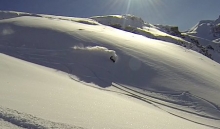 By 9 am the team were off. We headed straight up the Toviere and skied down to La Daille to get the bus to the middle of Val D’Isere. All of us were sketching out a bit; getting used to the feel of lighter skis and split boards on piste… luckily they were rad once we hit the powder!