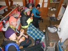 For most of us, this was our first time touring and it was a little bit of a shock to the system! At about 3000m above sea level breathing became more of a task than a subconscious bodily function, particularly for people like me who had broken ribs only a week before! We hiked for 45 minutes and reached the Refuge Fond Des Fours. The refuge consisted of three small wooden huts, one of which housed a small kitchen and dining tables with a log burning stove. The others contained cosy bunk beds and an ‘outhouse’! Without the log burner on, it was definitely colder in the hut than it was outside in the sunshine, which didn’t bode well for the evening ahead in the bunk beds...