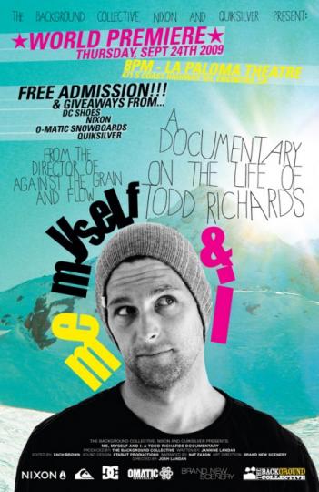 A film by Award winning director Josh Landan, “Me, Myself and I” reveals the story of a man hailed as one of the most decorated snowboarders in history- from birth to legend. Todd Richards exposes all layers as he chronicles his life on film for the very first time. He was introduced to the sport in its infancy, and took over as it was catapulted onto the world’s stage. Riding professionally for over 19 years, Todd is a force to be reckoned with, dominating Winter X Games, Vans Triple Crown and the US Open. Not only was he the first gold medal X-Games winner, he also participated in the first US Snowboarding team at the 1998 Nagano Olympics.