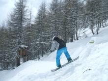 "Some of the girls had never even ventured into a park before, having found them too intimidating. However, by the end of the morning, with help from the Alliance instructors and encouragement from their fellow girlies, everyone was hitting the box and the little kicker. The more experienced girls were getting into spinning and even flipping, powered by the soft powder landing. The bigger kickers looked a bit scary with a wee road gap but once the first lass hit it, they were lining up to get their turn. At lunch, Rog and his crew at the Melezes Hotel over the road (who had been keeping us motivated all morning by cranking up the tunes), let us shelter in their bar while we munched on our picnic. Andy Parant (Tignes Official X Games photographer) joined us and shared his top tips to get a good shot for the competition in the afternoon. The photography would have to wait though, as all the girls were excited by their morning session and were too eager to get back to flying and sliding to take pics.