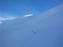 Then you need to get off those slopes when the snow surface begins to get too soft and mushy or you’ll start breaking through, which is dangerous for your knees. AND the slope may be unstable due to all the melting - then avalanches can be a problem.